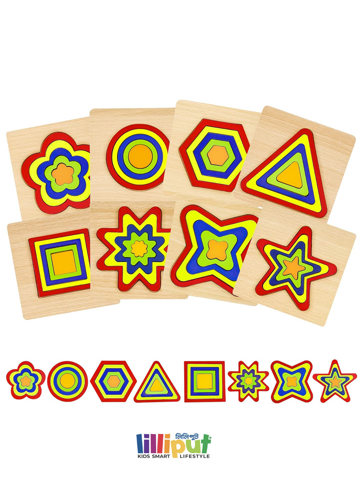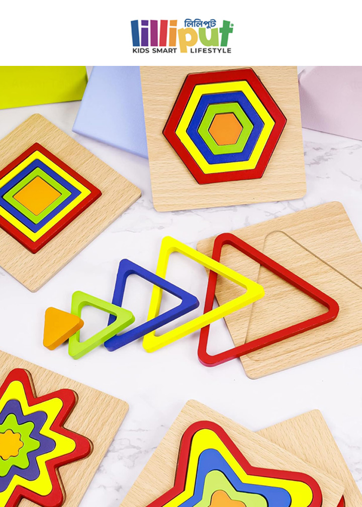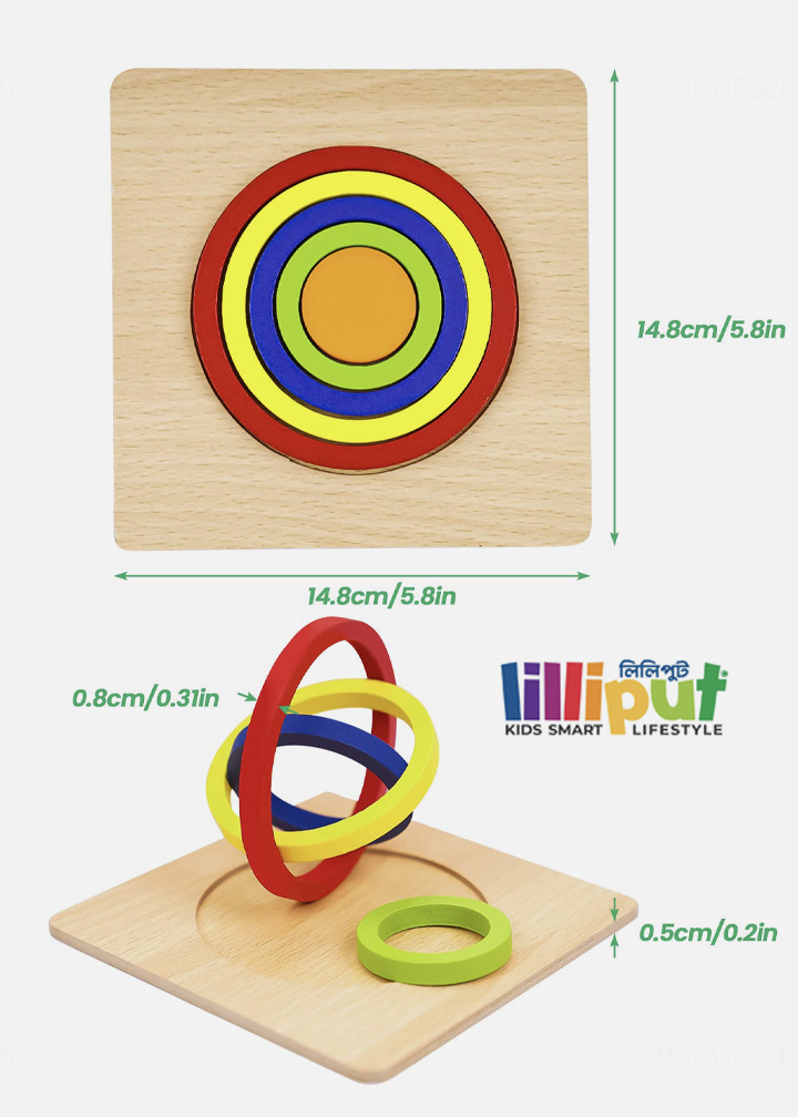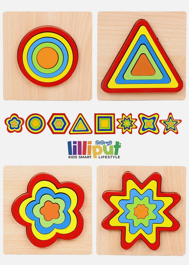 Wooden Rainbow Color Geometry Jigsaw Puzzle Board for Kids. Size: 15 X 15 CM.